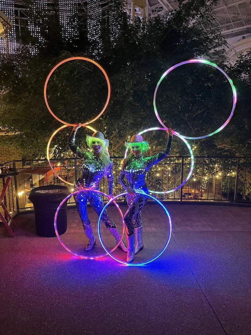 Goodness Gracious Creative has worked across some of Nashville’s most iconic spaces, customizing acts to fit each venue’s layout, theme, and audience. From aerial rigging over cocktail receptions to LED hoop performances during after-parties, every moment is designed to wow.