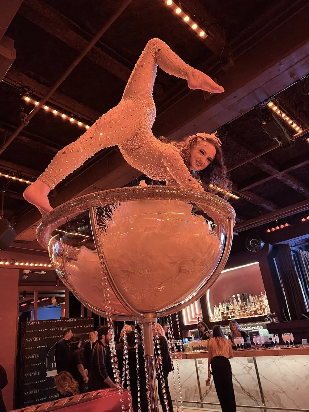 Our Giant Martini Glass act is one of our most requested luxury entertainment features. A performer dances and interacts atop a stunning oversized martini glass, delivering glamorous, high-energy visuals perfect for corporate parties, galas, weddings, themed events, and VIP celebrations. This freestanding prop creates an unforgettable focal point that guests love for photos and social media moments.